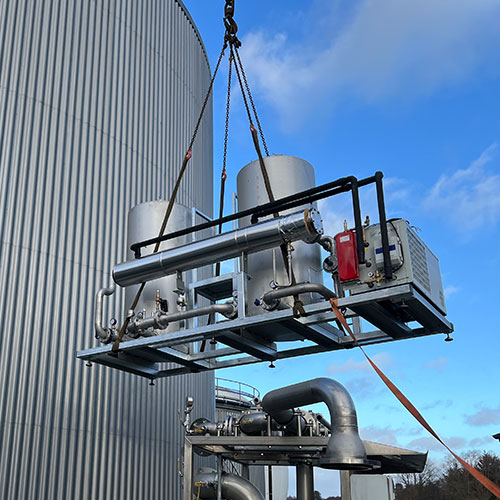 Vi følger kunden gennem hele processen – fra rådgivning og design til installation og efterfølgende service – for at sikre en løsning, der giver maksimal udnyttelse af biogassen og en pålidelig drift i mange år frem.